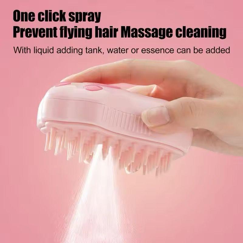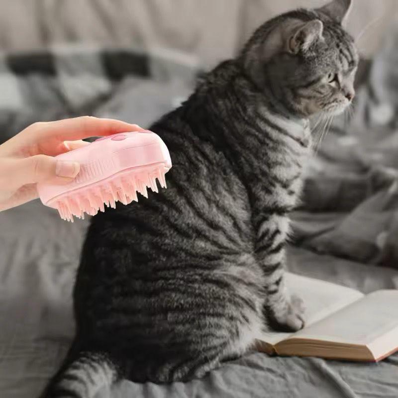 Mango cepillo de vapor de silicona suave para gatos, rociador de agua eléctrico, peine de masaje para mascotas, cepillo de baño retráctil para gatos, productos de belleza